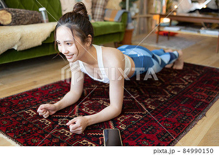 部屋で体を鍛えるかわいい女性