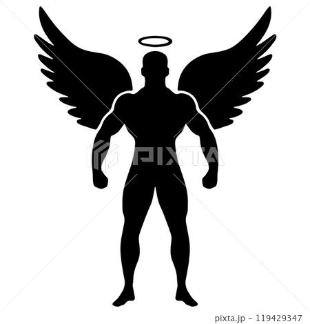 ボディビルダーの天使のシルエットイラスト 透過背景の切り抜き