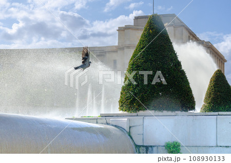 view the Trocadero and the architectural ensemble of the central fountain. Paris.