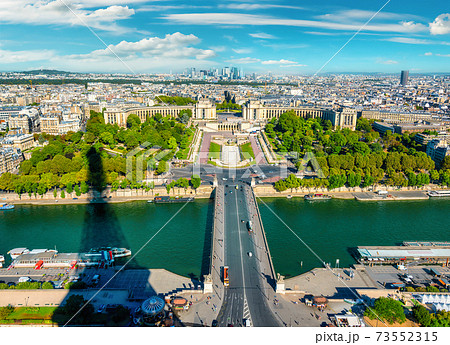 Panorama of Paris view from the Eiffel tower. View of the Trocadero Palace.