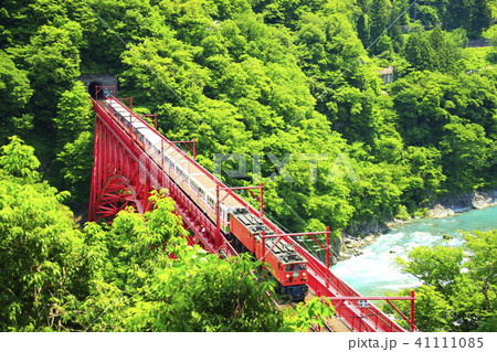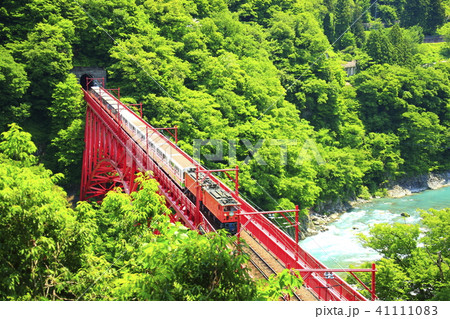 富山県宇奈月温泉 黒部峡谷鉄道 黒部川にかかる新山彦橋