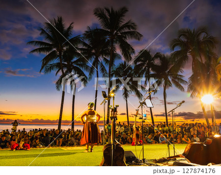 ハワイ ワイキキのフラダンスショー ※一部ソフトフォーカス