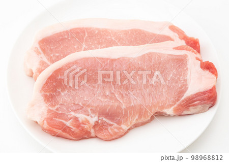 トレーに入った豚ロース肉 白バック