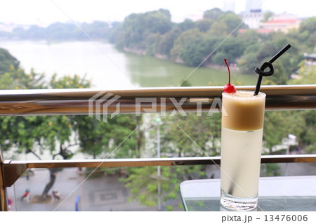 ハノイのカフェテラスでフルーツジュース