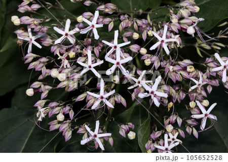 ヤブの中で咲くピンクと白のクサギの花