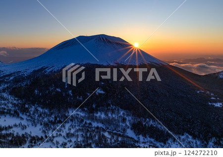 浅間山と御来光の絶景(黒斑山からの冬景色)