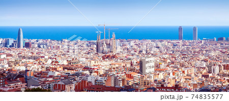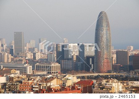スペイン バルセロナ サグラダ・ファミリアからバルセロナ市街 トーレ・グローリーズ 5月の早朝