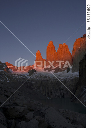 Torres del Paine at pink sunrise, Patagonia, Chile