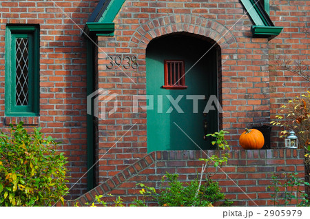 ワシントン州シアトル レンガの家とカボチャ