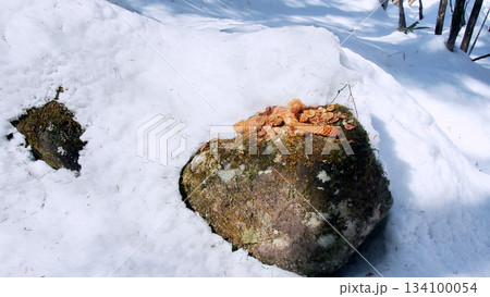 リスがドイツトウヒの実を食べた跡(森のエビフライ)