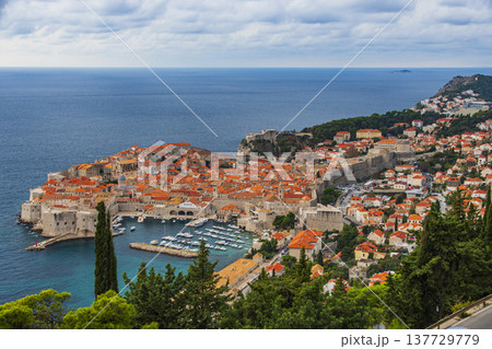 クロアチア ドゥブロヴニクの旧市街の街並みとアドリア海
