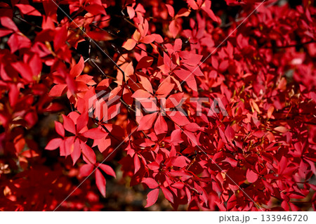 神戸市立森林植物園の真っ赤に紅葉したドウダンツツジ
