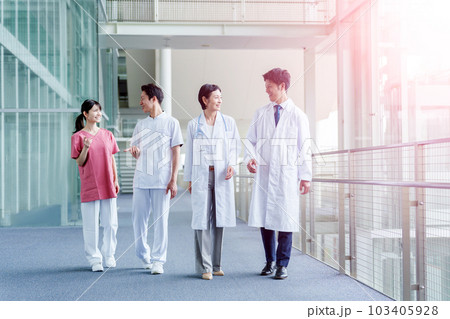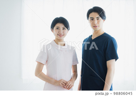 病院で働く医療従事者の日本人男女(医者・看護師)