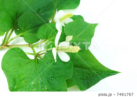 初夏の野の花・花の時期のドクダミ・白バック横位置引き