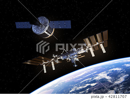 地球とISS &スペースシャトル3DCG perming3DCGmp160819 イラスト素材