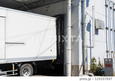 物流倉庫の積み下ろし口とトラック接続部と右側にラック2