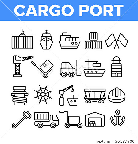 Cargo Port Vector Thin Line Icons Collection