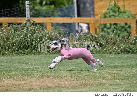 ドッグランで遊ぶミニシュナ (ミニチュアシュナウザー)