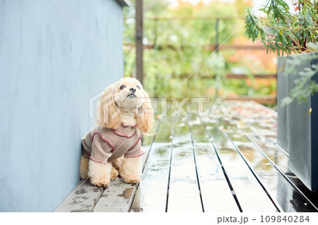 犬服(ドッグウェア)を着ている犬(小型犬)