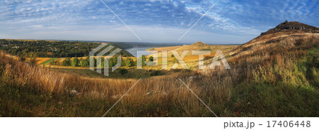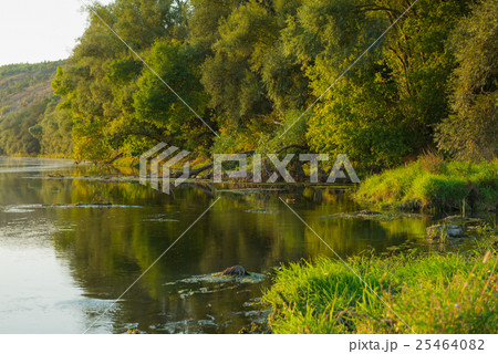Beautiful evening landscape. River with rocky hills at Beautiful evening landscape. River with rocky hills at sunset in autumn. Beautiful nature sunset. Beautiful nature