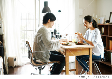 朝食を食べる夫婦
