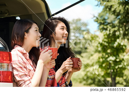 ガレージ 車 車庫 ドライブ ティータイム 友達 仲間 女性 運転 運転手 ドライバー 休日