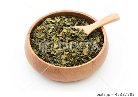 机の上の乾燥した茶葉・漢方薬のイメージ