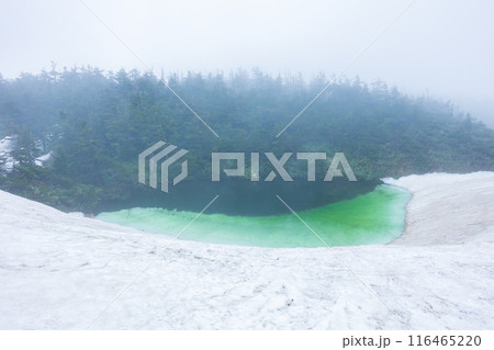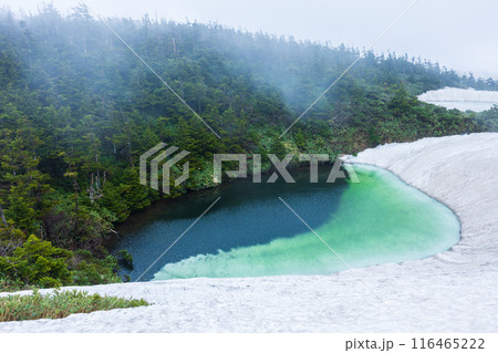 日本百名山 雪解けの八幡平 霧のメガネ沼