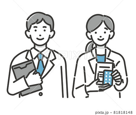白衣を着て薬やバインダーを持つ薬剤師のバストアップのベクターイラスト素材/医者/医療従事者