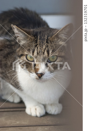 振り向きざまにこっちを見つめる猫