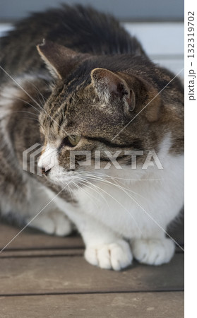漁港の猫 横を向いて座る