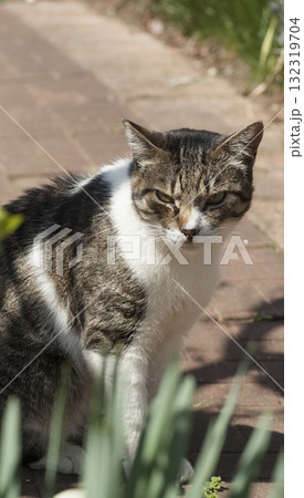 ブチ猫 住宅敷地の野良猫