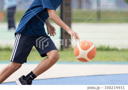 バスケットボールをする少年