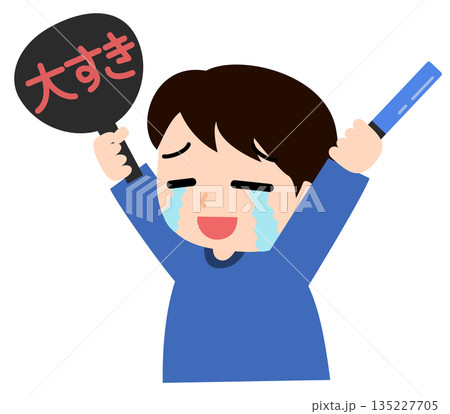 コンサートで熱狂的に盛り上がるアイドルファンの男性達 目ハート 上半身