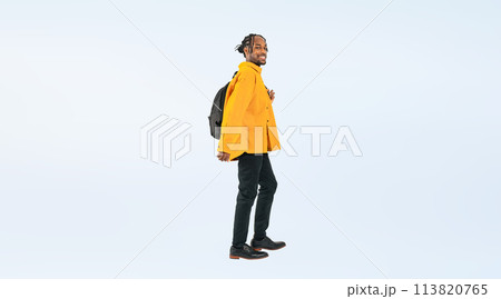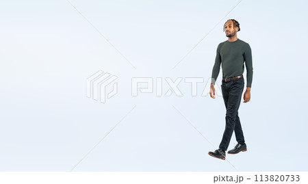 歩く黒人男性の全身写真