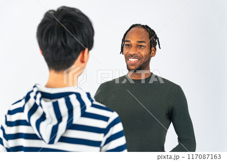 会話する外国人男性