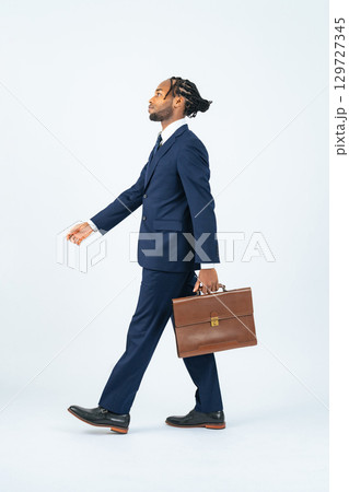 歩く黒人男性ビジネスパーソンの全身写真