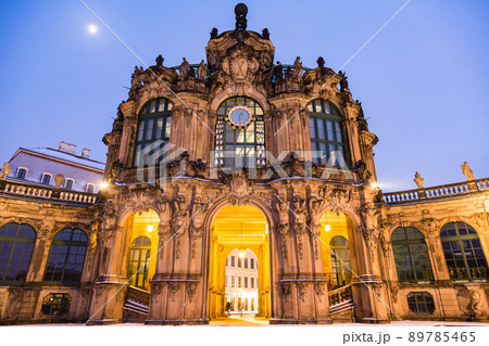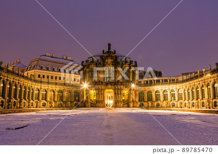 ドイツ ドレスデンのライトアップされたツヴィンガー宮殿