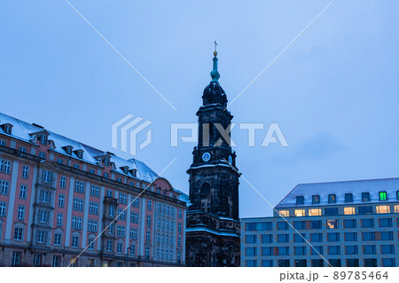 ドイツ ドレスデンのノイマルクト広場に建つ雪の積もった聖母教会