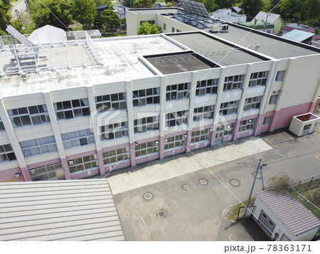 上空から見た学校(空撮 同時撮影の動画素材あり)