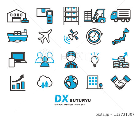 物流DXに関するアイコンのベクターイラスト素材