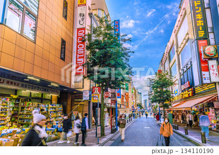 日本の川崎都市景観 川崎駅前の人気商店街「銀柳街」やドン.キホーテなどを望む