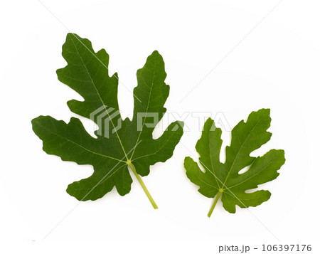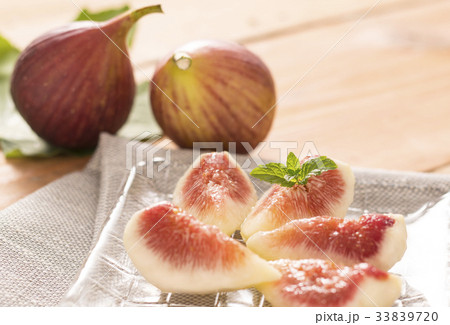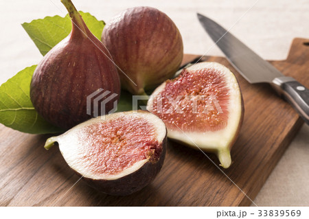 イチジクの葉と果実(半分にカットしたものあり)のイラスト素材(水彩)