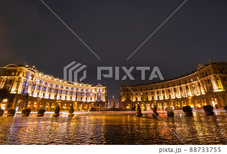 イタリア、ローマ、共和国広場、ナイアディの噴水、夜景