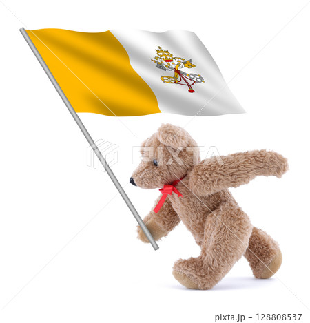 Vatican City flag being carried by a cute teddy bear