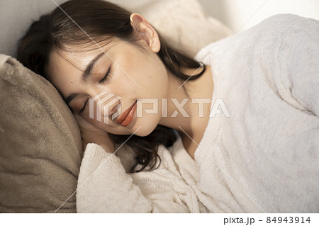 ベッドで寝る若い女性のシンプルなベクターイラスト素材