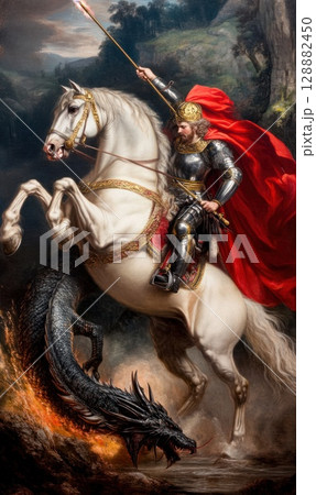 St. George’s Day: Dia de Aragon, Spanish festivity, medieval legend, noble steed, dragon slayer, Christian faith, heroic victory, cultural identity, Aragonese spirit, historic valor, regional heritage
