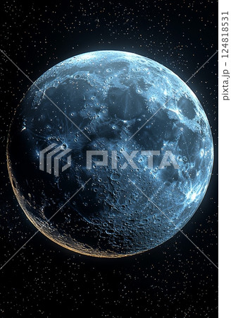 A full moon illuminates a night sky filled with fluffy clouds painted in varying shades of blue, purple, and soft white. Twinkling stars add a magical touch to this serene scene. Generative AI