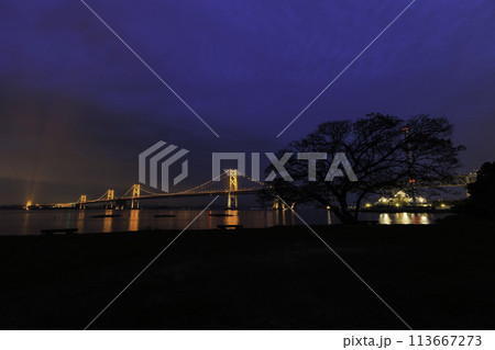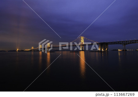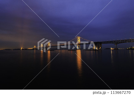 《香川県 瀬戸大橋》沙弥ナカンダ浜からの瀬戸大橋のライトアップ