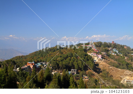 南アジアのネパール ヒマラヤの展望台として知られるカトマンドゥ郊外の村ナガルコットからの景色